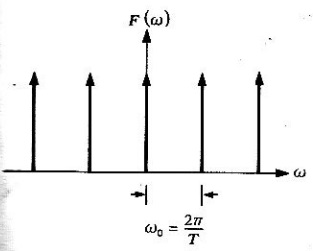 Esta ecuación establece que la transformada de Fourier de una función periódica, consta de una sucesión de impulsos equidistantes localizados en las frecuencias armónicas de la función.