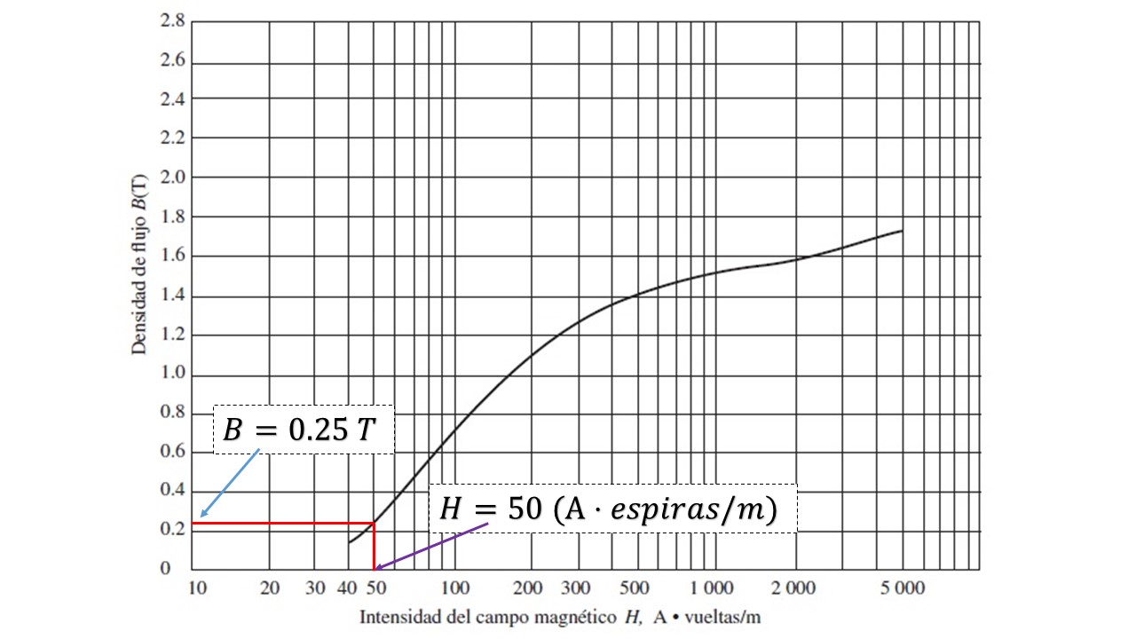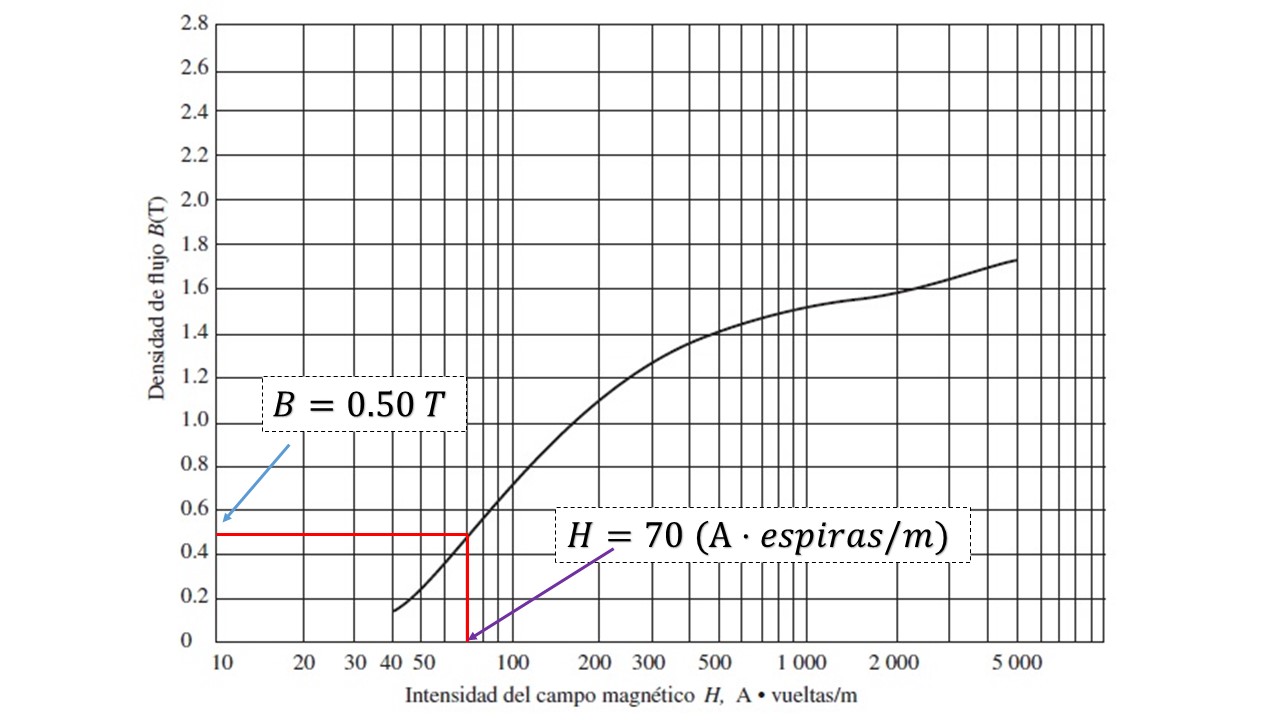 Por tanto, la intensidad magnética para un flujo magnético de 0.50 T es