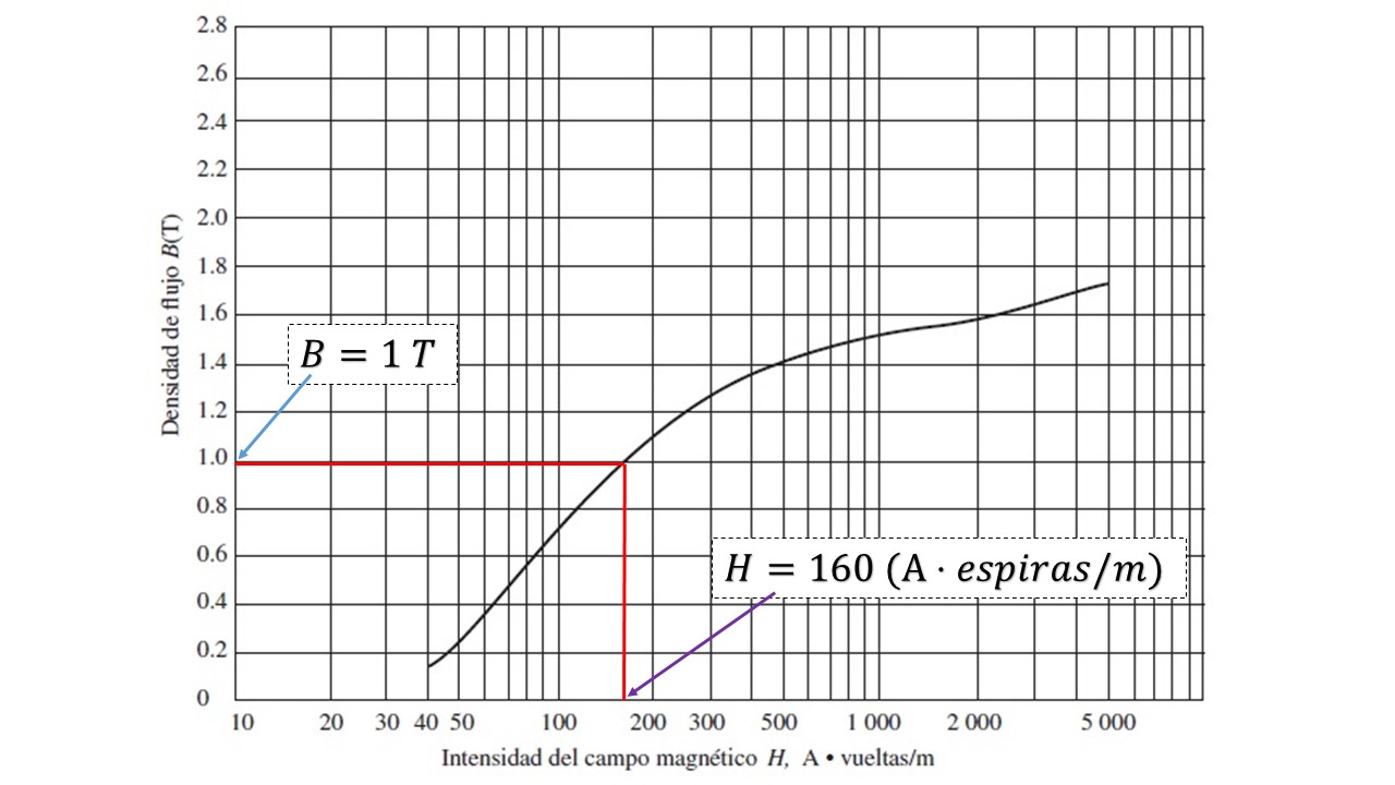 Por tanto, la intensidad magnética para un flujo magnético de 1 T es