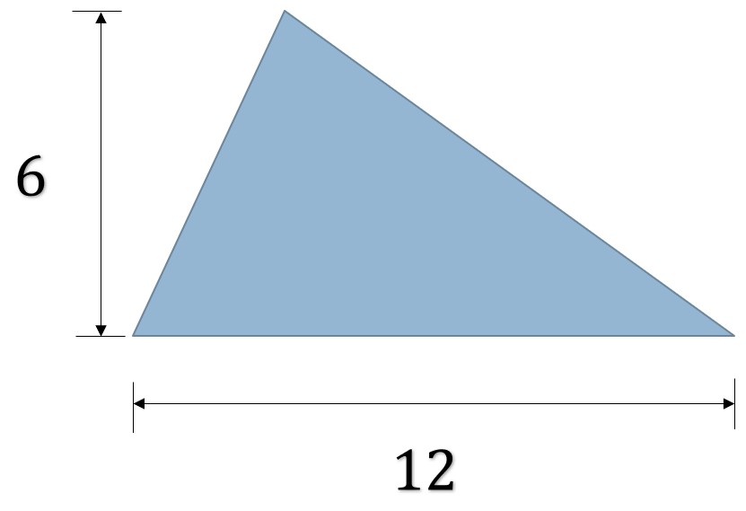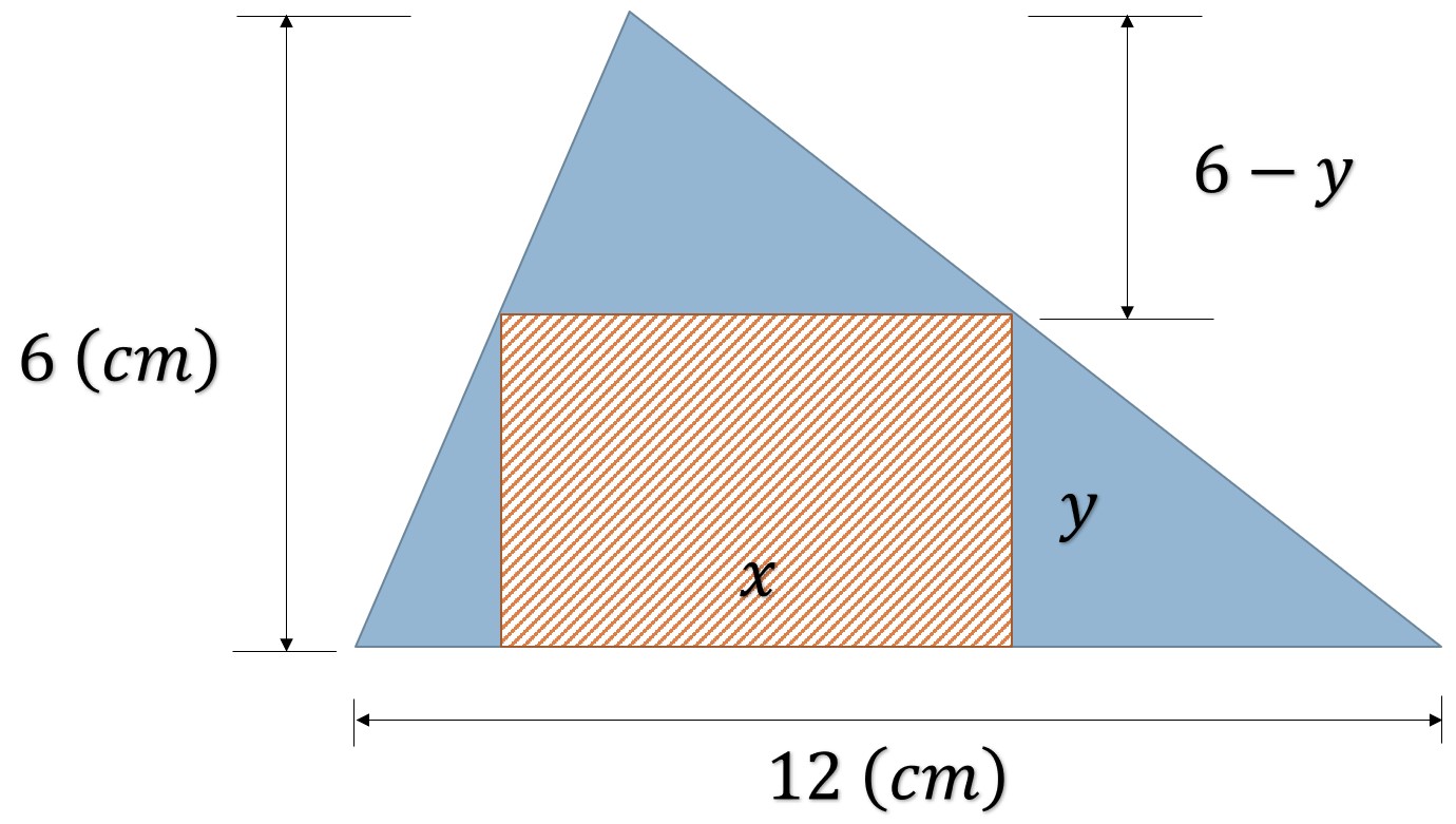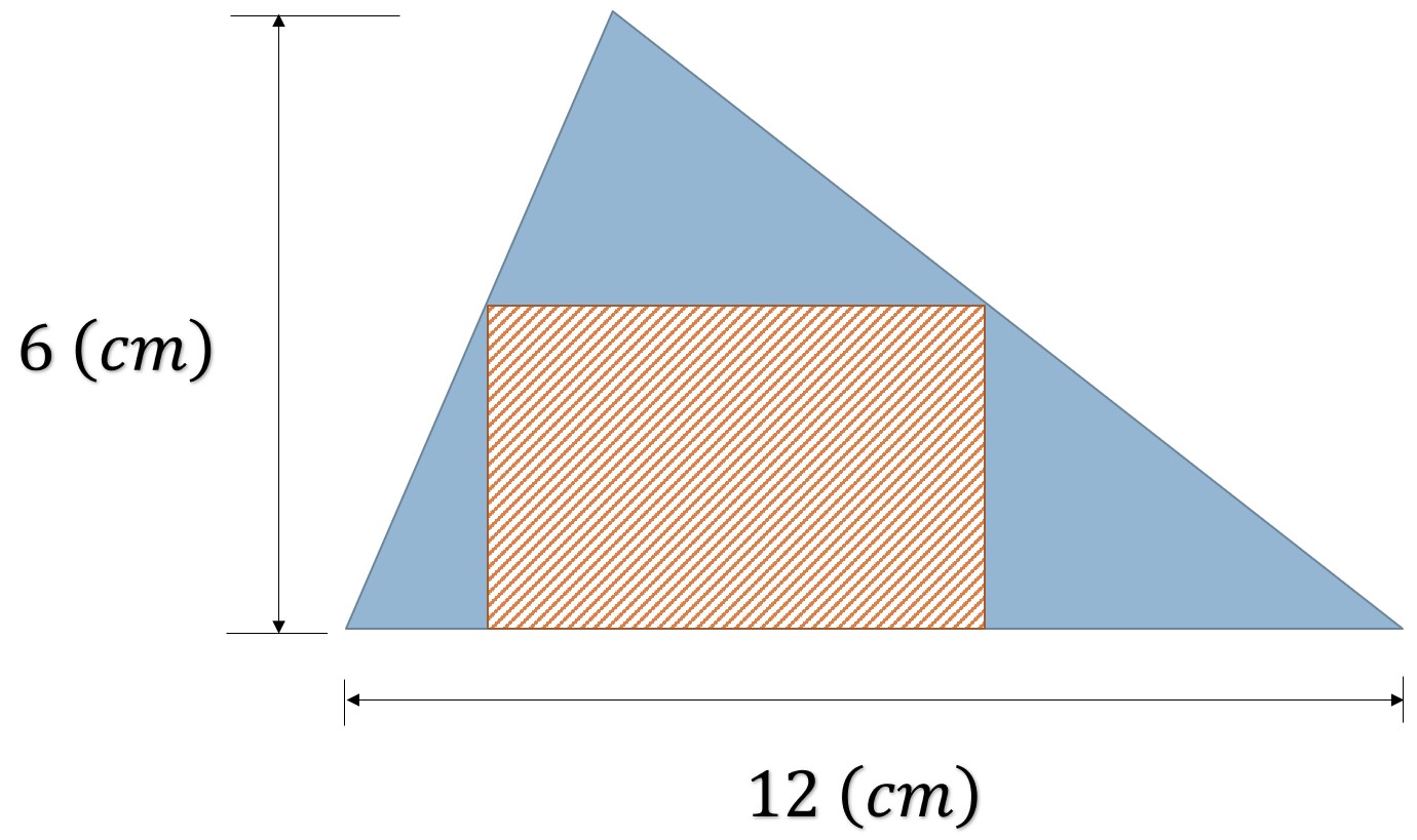 Problema. Hay un triángulo escaleno de base 12 (cm) con una altura de 6(cm). Hallar el área del mayor rectángulo inscrito cuya base coincida con la base del triángulo.