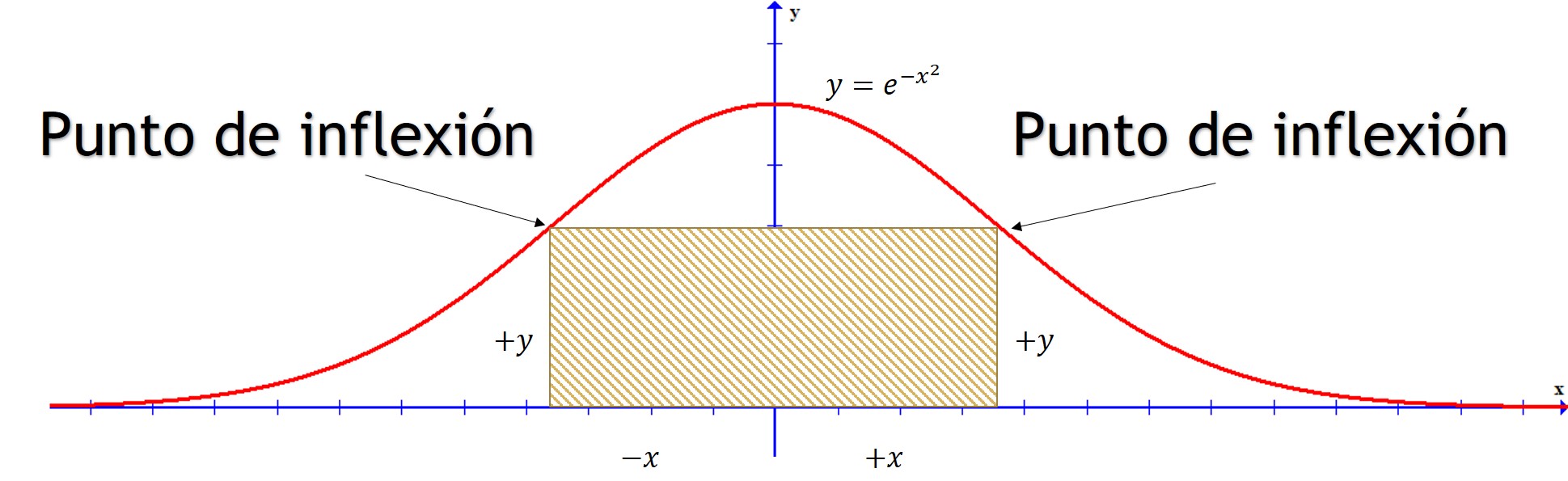 Problema. Probar que el rectángulo de área máxima con base sobre el eje OX y dos vértices sobre la curva , deberá tener estos dos vértices sobre los puntos de inflexión de la curva.