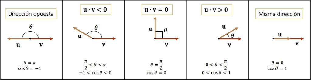 se obtiene una alternativa de calcular el producto escalar. De esta forma, se puede puede ver que como ||u|| y ||v|| son siempre positivos, y