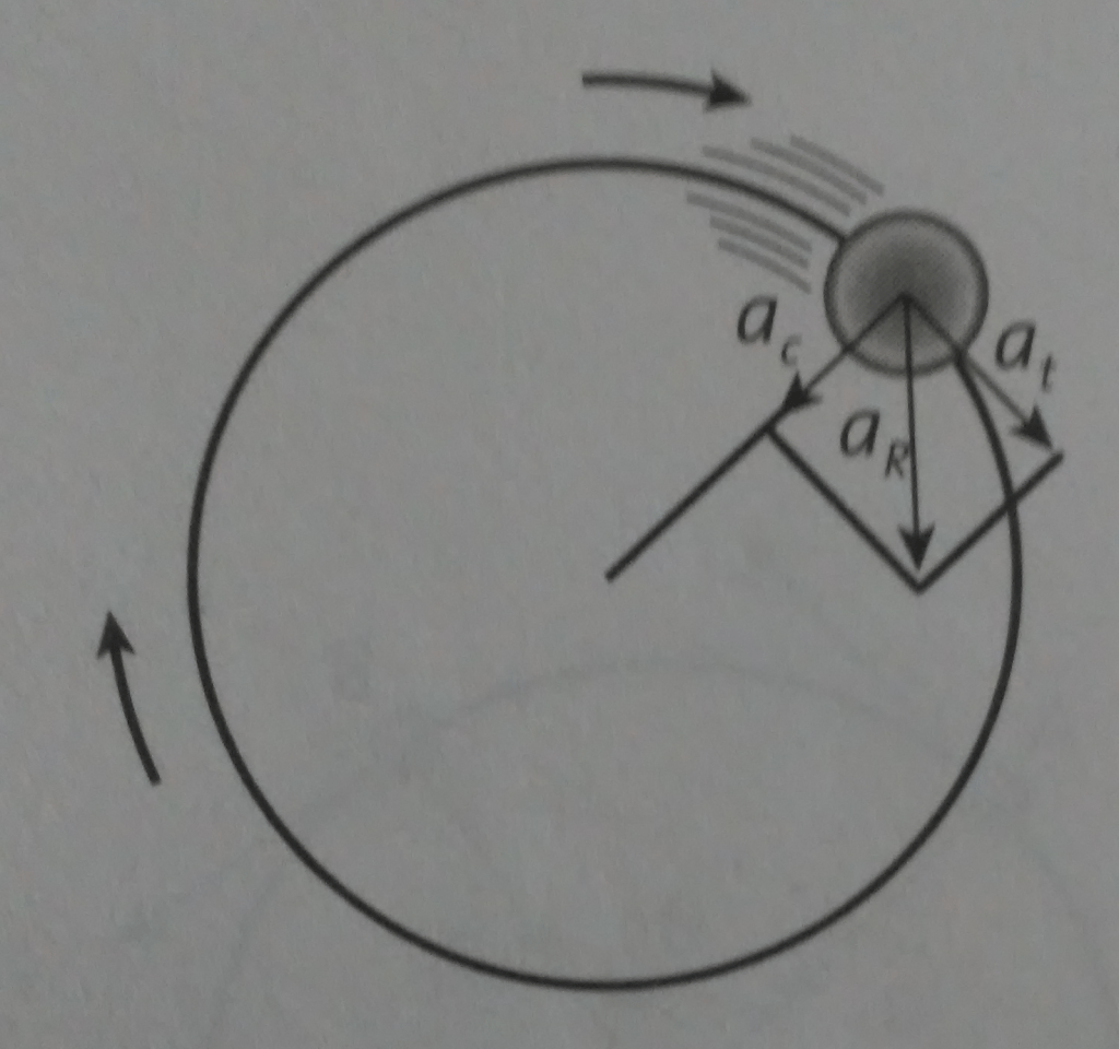 Un ejemplo es el automóvil de carreras que entra en una curva acelerando o frenando o el lanzamiento de un disco. Cuando se requiera calcular la aceleración resultante (), se deben sumar vectorialmente ambas aceleraciones.
