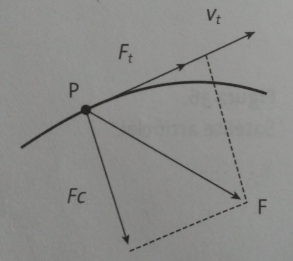 Por ello, en cualquier movimiento curvilíneo la fuerza aplicada tiene dos componentes, la tangencial () y la centrípeta (
