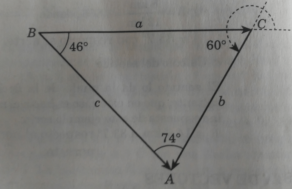Se traza el segmento del vector , a 0°; a continuación se une el segmento del vector