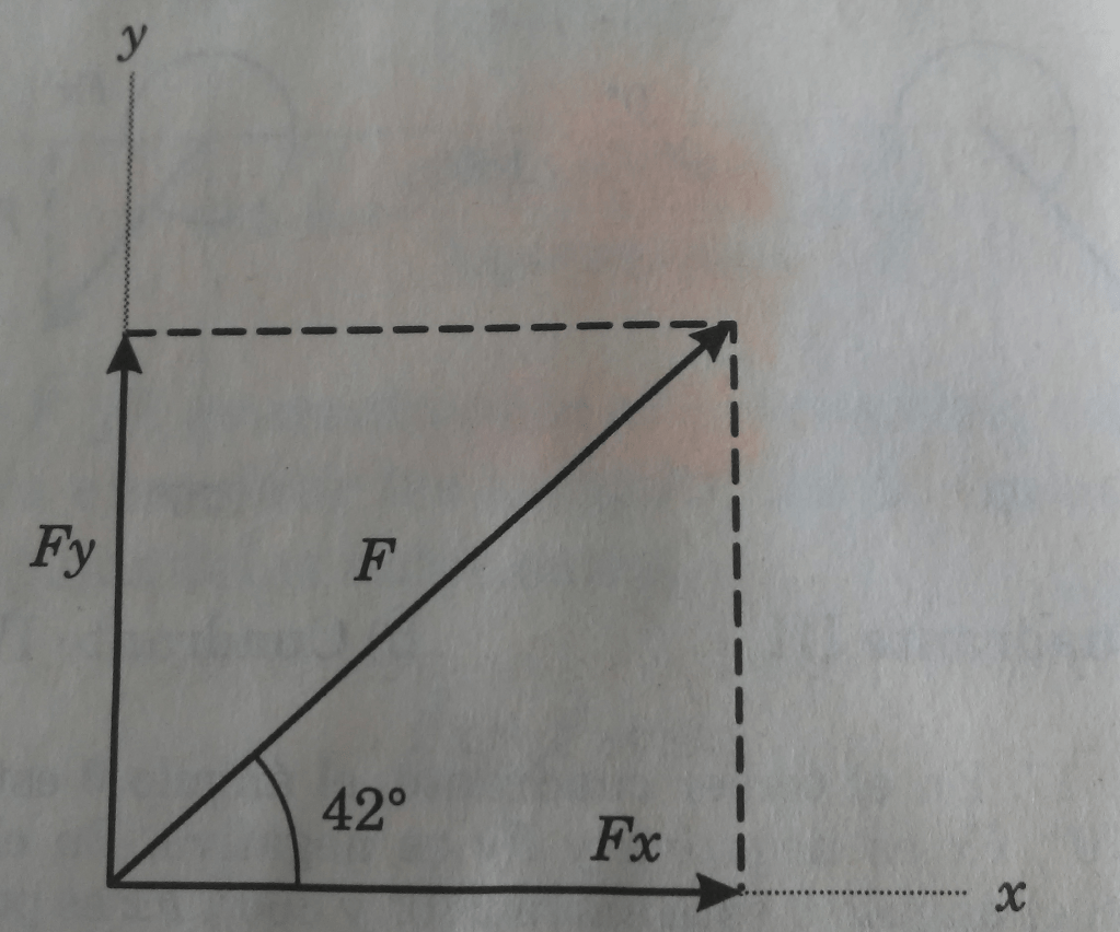 de una fuerza de 25 N, actuando en una dirección de 42° respecto de la horizontal como se muestra en la figura 7.