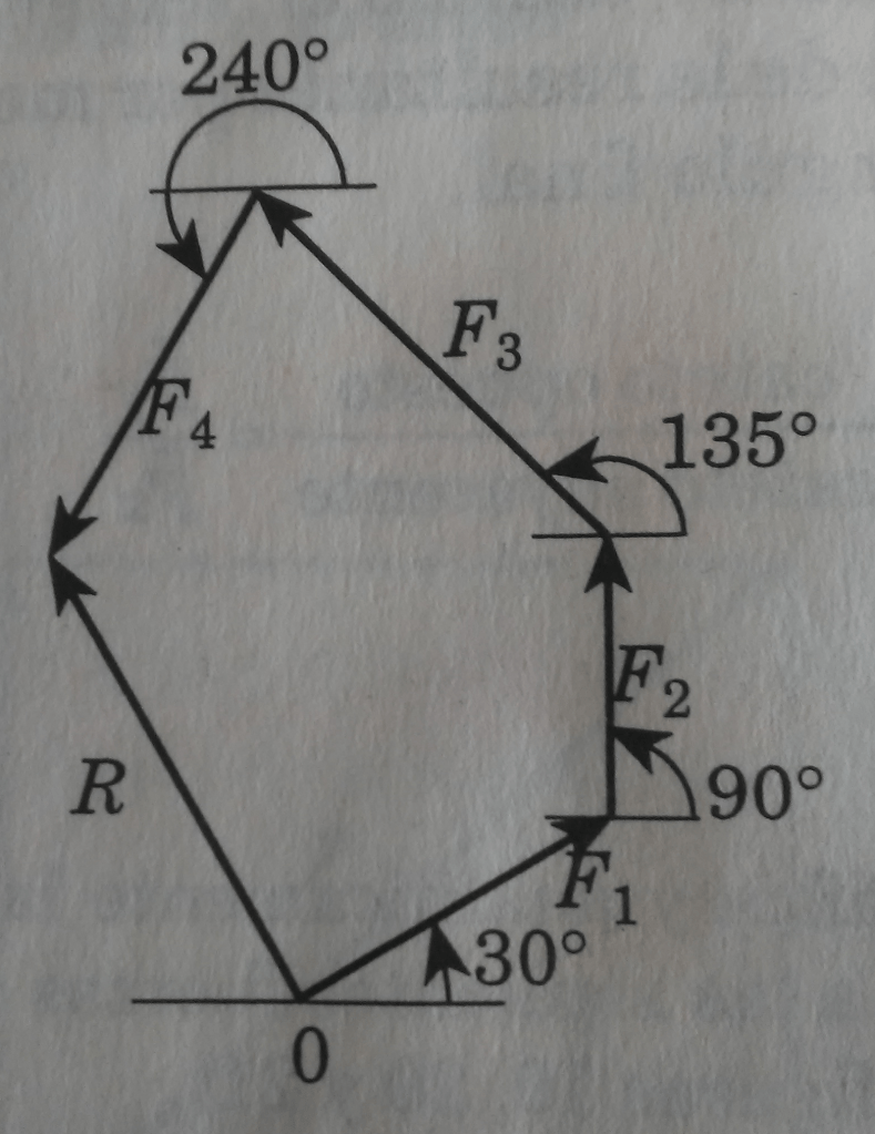 Problema. Calcular gráfica y analíticamente la fuerza resultante equivalente a las siguientes fuerzas (ver los diagramas vectoriales, figuras 8, 9, y 10).