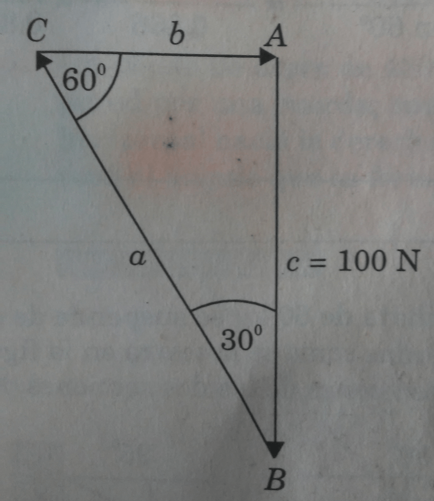 Para representar el triángulo de las fuerzas vectorialmente, se muestra el diagrama (b) de la figura 6; entonces