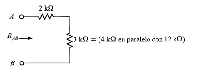 Sumando la resistencia equivalente en serie mediante los resistores 3 kΩ y 9 kΩ, da como resultado de 12 kΩ