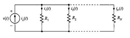 Ahora considerando el circuito con resistores en paralelo de la figura 3 y aplicando la ley de Kirchhoff de corriente al nodo superior, se obtiene