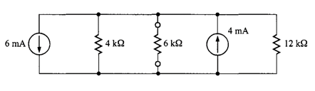Solución. Para simplificar la red de la figura 5 se suman algebraicamente las fuentes de corriente, y los resistores en paralelo se combinan de la siguiente manera; para las fuentes de corriente (usando LKC en el nodo superior)