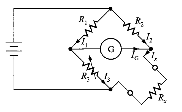 Aunque éste tipo de óhmetro es muy útil, no es un instrumento de precisión. Un dispositivo mucho más preciso para medir valores de resistencia con un amplio alcance es el punte de Wheatstone. El circuito del puente de Wheatstone se muestra en la figura 3. En esta red, las resistencias ,