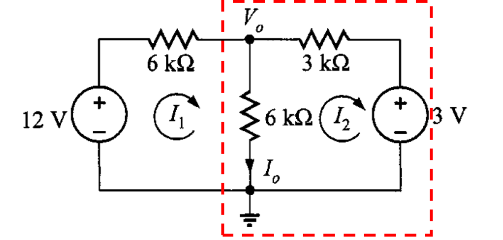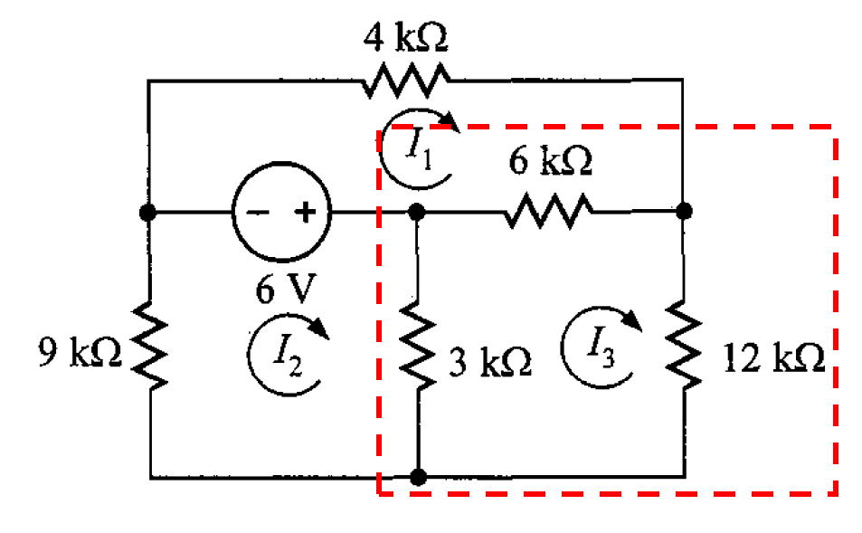 Dado que se desea calcular la corriente , se puede aplicar el análsiis de lazos como se muestra en la figura 4.
