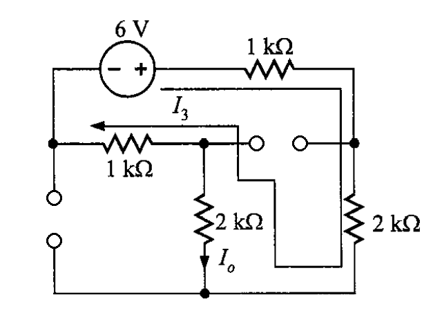 La corriente de lazo debe pasar por los elementos de circuito no abiertos por las dos ecuaciones anteriores y no puede pasar por las fuentes de corriente. Al colocar en circuito abierto las fuentes de corriente se obtiene la trayectoria para la corriente de lazo restante (figura 6).