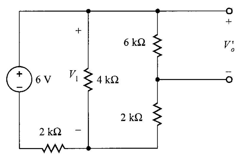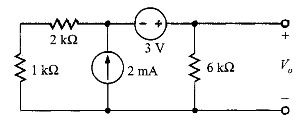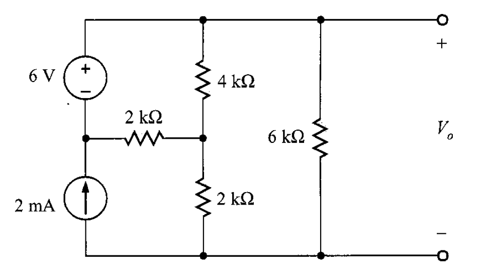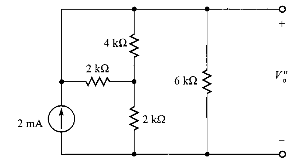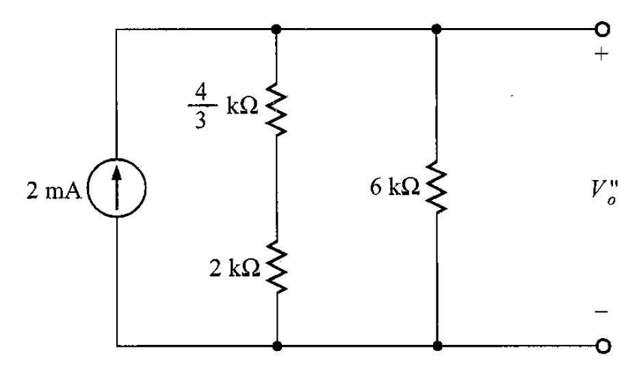 Solución. Para aplicar la superposición, primero se debe encontrar la contribución de la fuente de 2 mA en el voltaje de salida utilizando la división de corriente en la red de la figura 5 (haciendo que la fuente de voltaje actúe como un cortocircuito).