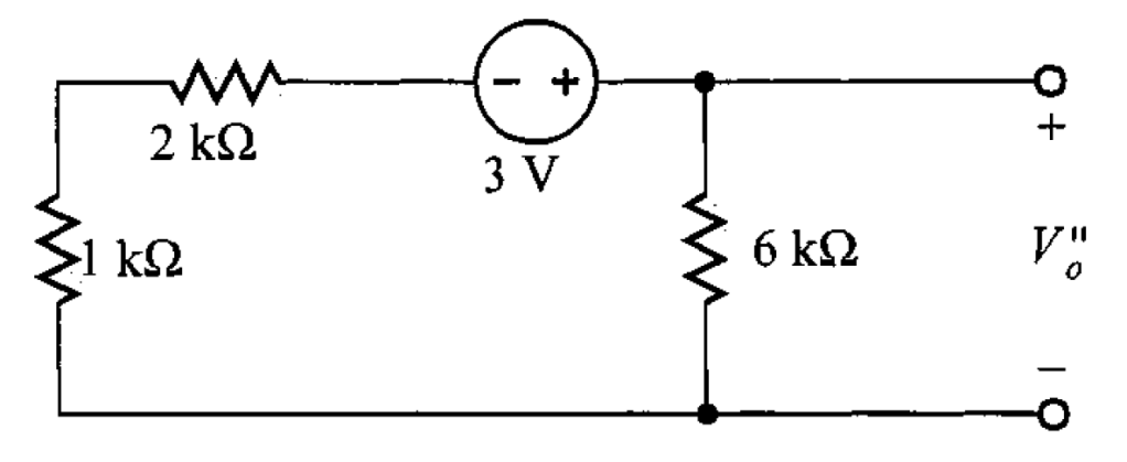 Solución. Para aplicar la superposición, primero se hace que la fuente de corriente se comporte como circuito abierto (figura 8), provocando la contribución de la fuente de 6 V a .