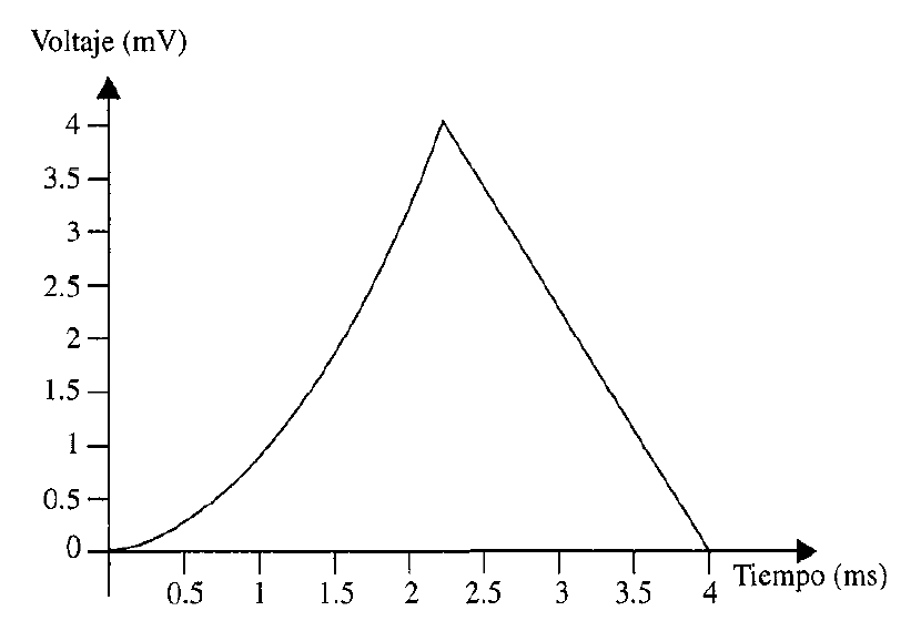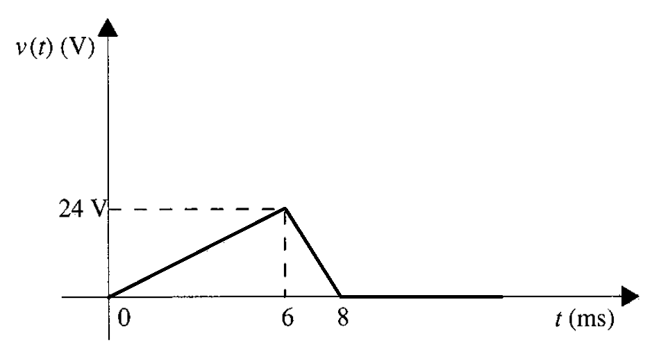 Problema 2. El voltaje en los extremos de un capacitor de 5 μF tiene la forma de onda que se muestra en la figura 4.