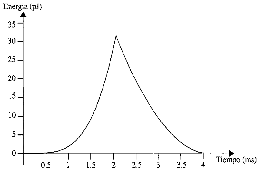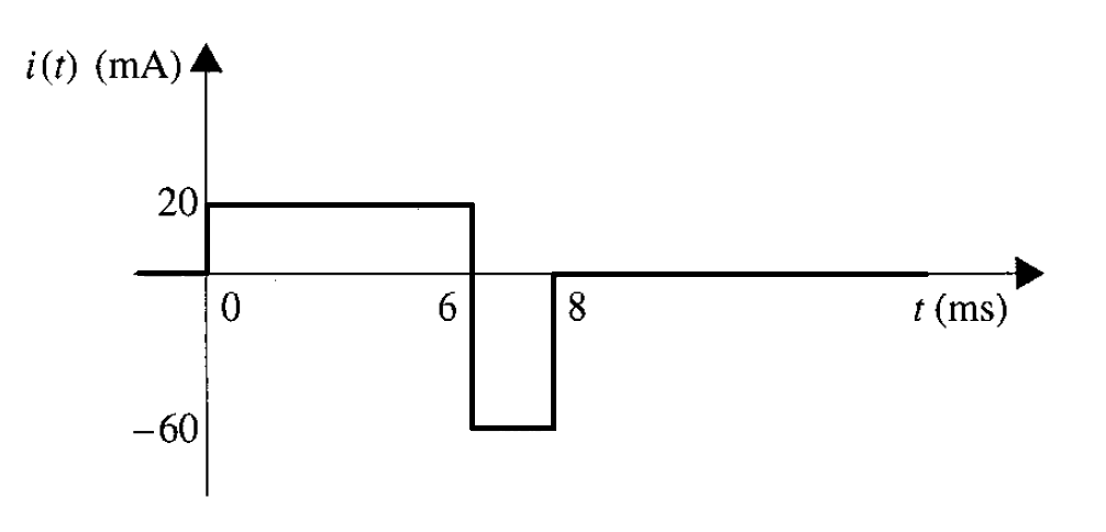 Problema 3. La figura 6 muestra la corriente en un capacitor de 4 μF inicialmente descargado. Derivar las formas de onda para el voltaje, la potencia y la energía, y calcule la energía almacenada por el campo eléctrico del capacitor en .