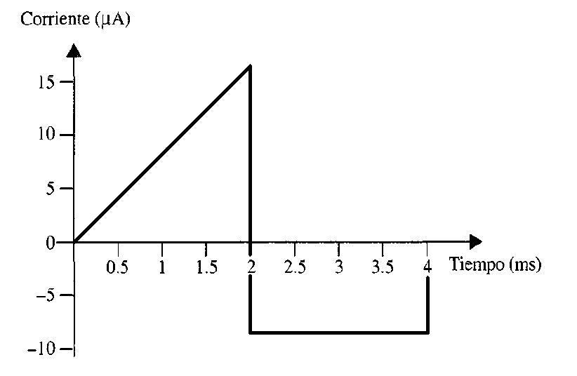 Sustituyendo en la siguiente ecuación, resulta que en el intervalo , la corriente es