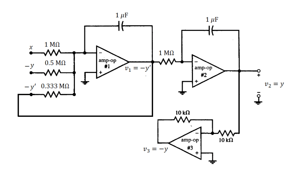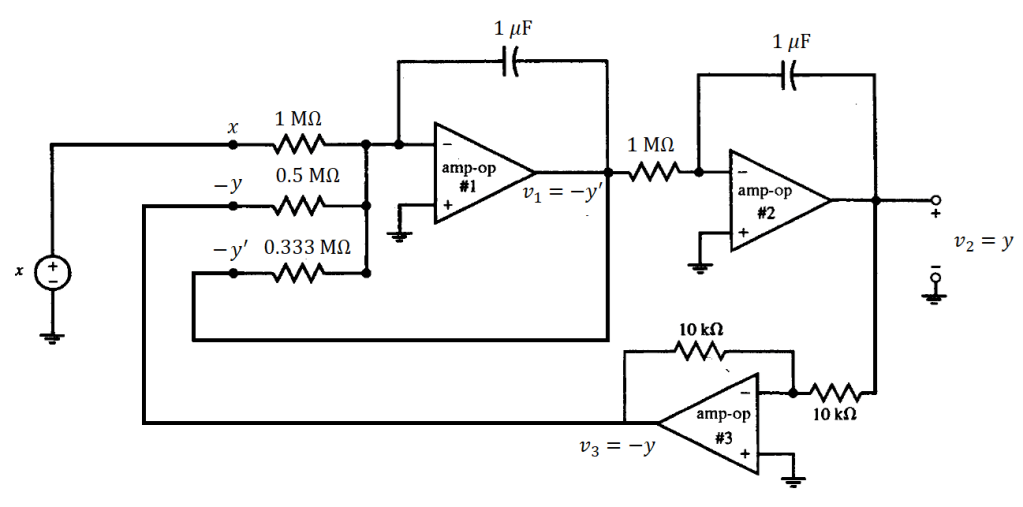 Para diseñar un circuito computador, en primer lugar hay que reordenar la ecuación diferencial correspondiente, de tal forma que el término que tenga la derivada mayor esté en el primer miembro de la ecuación (lado izquierdo) y los otros en el segundo (lado derecho). Se añaden integradores y amplificadores en cascada y anidados en lazos.