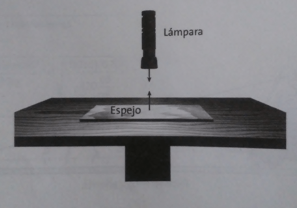 La primera ley de la reflexión de la luz establece que el rayo incidente, la normal (línea imaginaria perpendicular a la superficie del espejo) y el rayo reflejado se encuentran sobre el mismo plano (sistema coplanar).