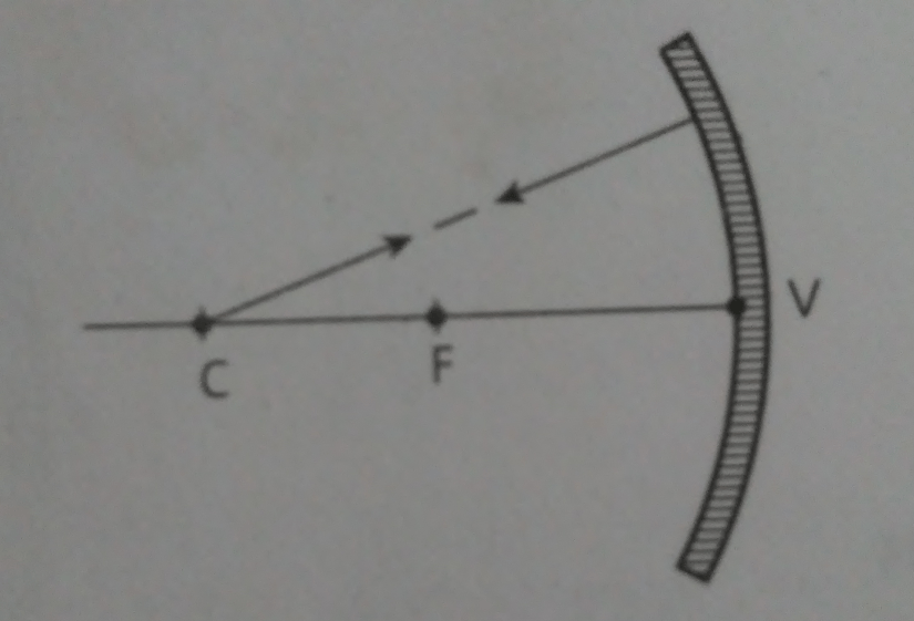 - Cuando el rayo de luz pasa por el centro de curvatura, es reflejado en la misma dirección.