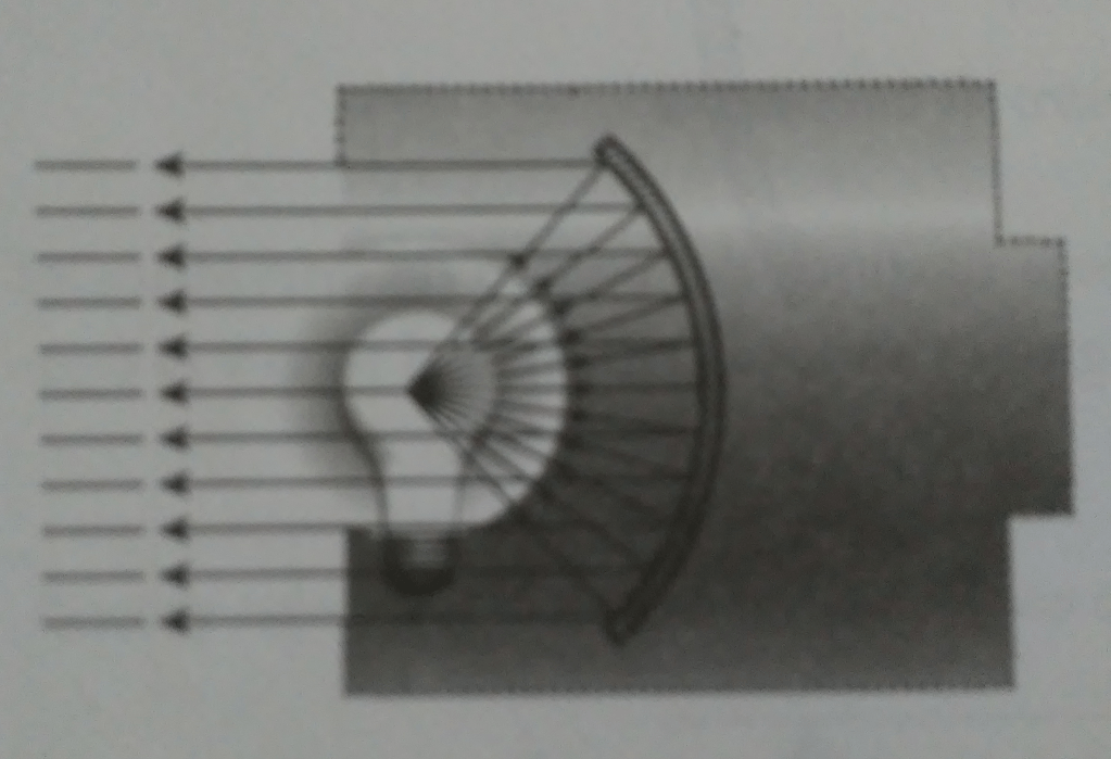 Estas propiedades de los rayos se aplican en un proyector de iluminación para que envíe un haz de rayos paralelos. La lámpara se ubica en el foco del espejo cóncavo.