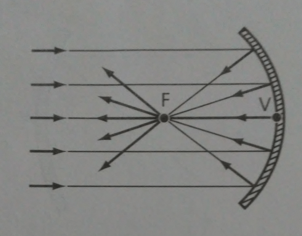 Un espejo esférico es cóncavo cuando los rayos luminosos son reflejados por la parte interior. Se usan por ejemplo e microscopios, telescopios, cámaras fotográficas y proyectores de transparencias para concentrar la imagen o luz en un punto. Estos espejos son también convergentes.