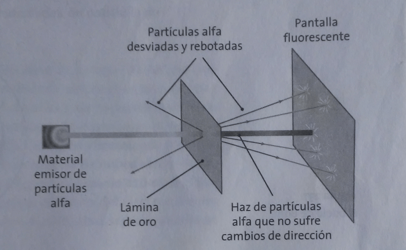 En 1911, Ernest Rutherford (1871-1937), físico inglés, premio Nobel (descubrió el núcleo atómico y se dedicó al campo de la desintegración de los elementos), propone su modelo atómico. Había bombardeado laminillas de oro muy delgadas con un haz de partículas alfa y observó que la mayoría de estas partículas atravesaban las laminillas sin sufrir ninguna desviación, otras eran desviadas y las menos rebotaban en sentido contrario. Su explicación fue que la mayor parte de la masa del átomo estaba concentrada en una región muy pequeña, a la que denominó núcleo atómico; que éste contenía una carga positiva, que los electrones giraban a su alrededor y que la mayor parte del átomo era espacio vacío debido a las enormes distancias existentes entre núcleo y electrones.