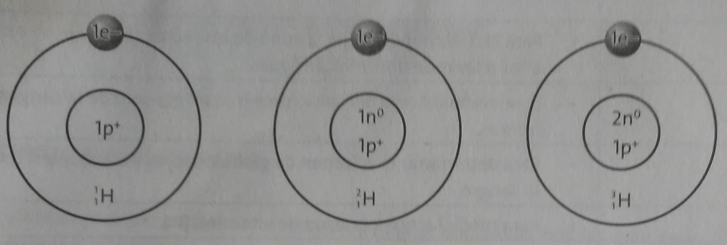 , y una masa atómica media de 63.54 uma, lo que indica que el isótopo más abundante es el de 63. El hidrógeno y el oxígeno tiene tres isótopos, que se muestran en la figura.