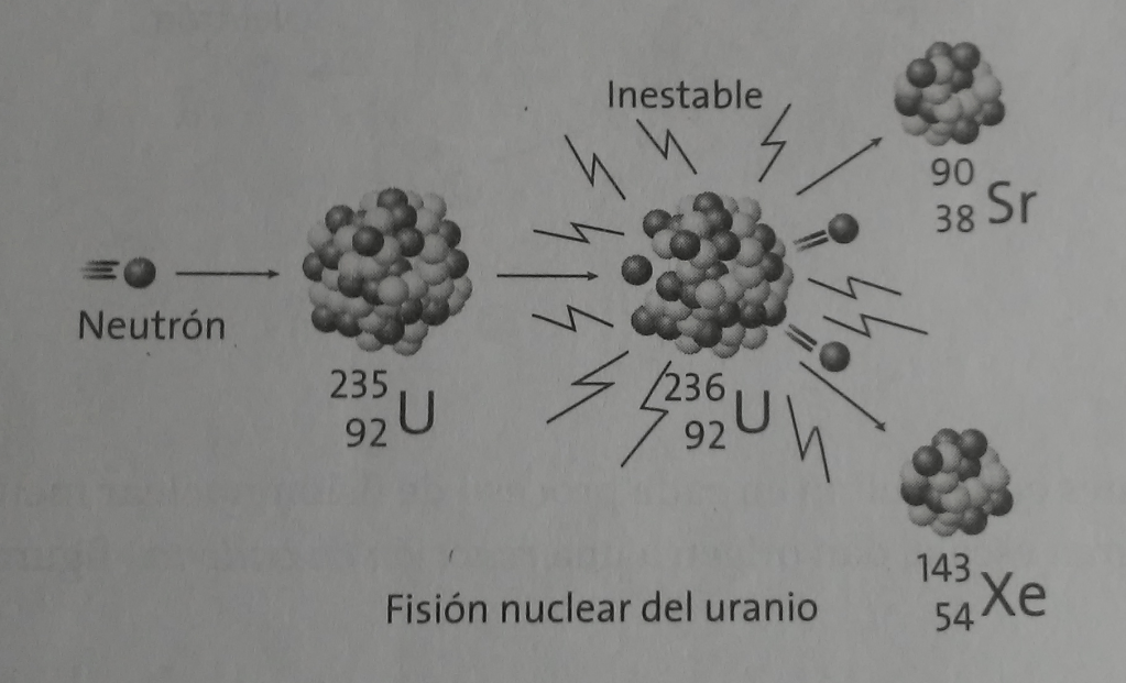 El fenómeno de la fisión nuclear consiste en bombardear núcleos pesados con neutrones para hacerlos inestables y obtener núcleos ligeros, neutrones y gran cantidad de energía en forma de calor y radiación.