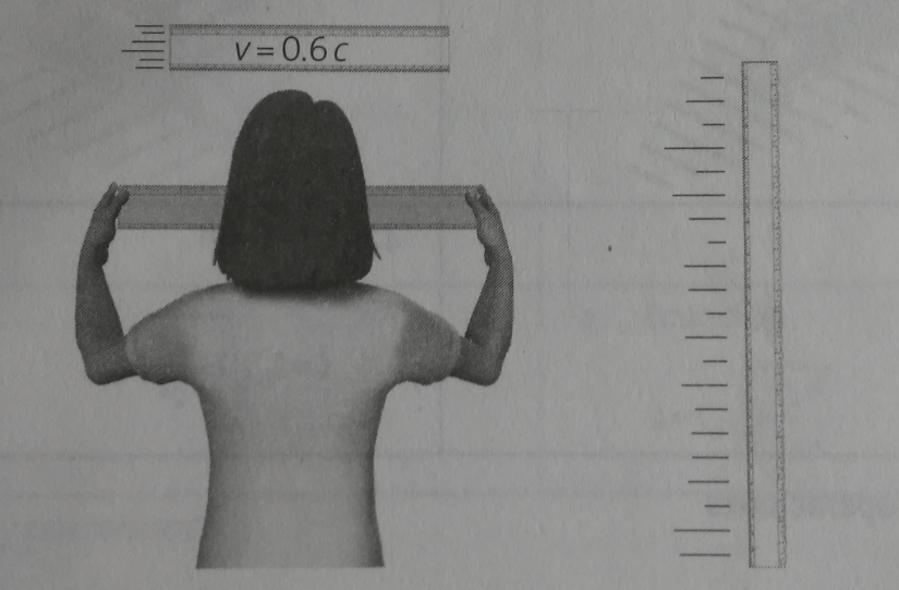 A medida que los objetos se desplazan a mayores velocidades relativistas a través del espacio-tiempo, el espacio se contrae y hace que el observador fijo externo vea más cortos los objetos acelerados. en todos los casos, la contracción sólo es en la dirección del movimiento (nunca en la dirección perpendicular). Esto significa que si un objeto se mueve en dirección horizontal, no habrá contracción vertical. En el caso límite en que la nave considerada alcanzara la velocidad de la luz, su longitud sería cero, lo cual es imposible. Por este motivo la luz es el límite superior de velocidad de cualquier objeto en movimiento. Entonces, a velocidades relativistas, una nave acortará su longitud, una regla de metro desplazándose en forma horizontal disminuirá su tamaño y una pelota de fútbol se adelgazará.