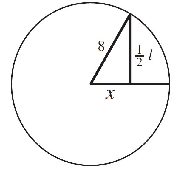 Problema 4. Expresar la longitud de una cuerda de un círculo de radio 8 como función de su distancia